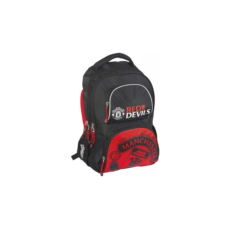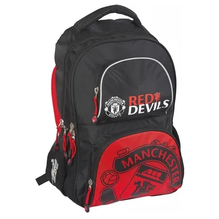 Plecak Manchester United wykonany został z najwyższej jakości materiałów, nieprzemakalnych i łatwych do czyszczenia. Jest lekki, posiada szerokie, ergonomiczne szelki wypełnione gąbką z regulacją długości, oraz uchwyt ułatwiający przenoszenie.