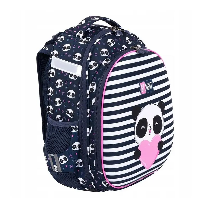 Tornister szkolny ST.RIGHT PANDA doskonale sprawdzi się jako codzienny plecak do szkoły podstawowej. Dzięki przemyślanemu układowi kieszeni ułatwia organizację podręczników, zeszytów oraz akcesoriów. Elastyczne kieszenie boczne pozwalają wygodnie przechowywać napoje, a przednia kieszeń zapewnia szybki dostęp do najpotrzebniejszych rzeczy.