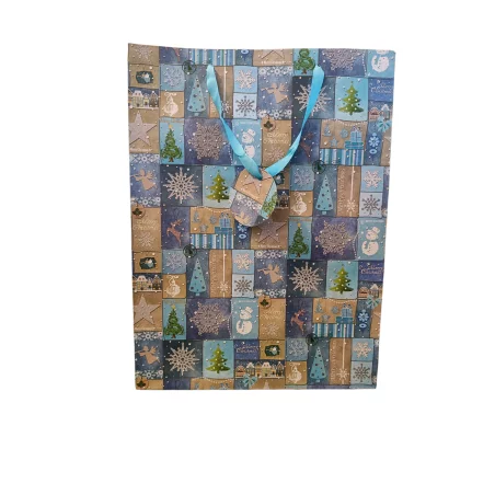 Na zewnętrznej stronie torebki znajduje się uroczy, bożonarodzeniowy motywy w postaci bałwanka, choinki, gwiazki, aniołka bombki który dodaje całości uroku i wyjątkowości.