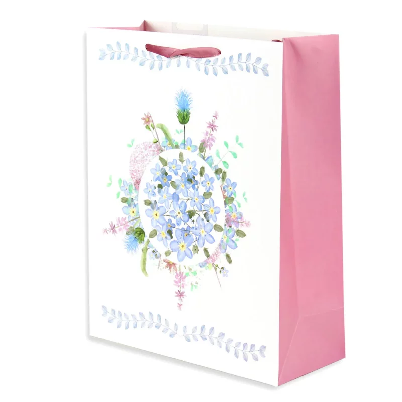 - ozdobiona nadrukiem w niezapominajki otoczone polnymi kwiatami i łodyżkami