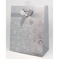 Piękna torba na prezenty świąteczne z motywem świątecznym z jednej strony srebrne, błyszczące dodatki!