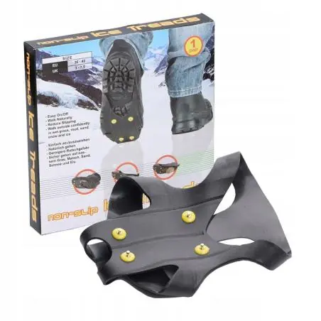 Praktyczne nakładki antypoślizgowe Dunlop RACZKI na buty w rozmiarze 36-42 zapewniają bezpieczne poruszanie się po śliskich nawierzchniach podczas zimy. Idealne na lód, śnieg i oblodzone chodniki, zwiększają przyczepność obuwia i minimalizują ryzyko poślizgnięcia, gwarantując komfort i stabilność.