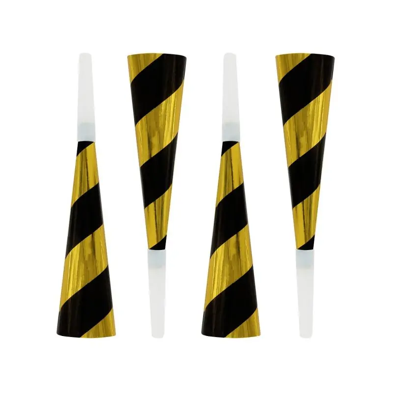 TRĄBKI URODZINOWE GWIAZDKI ZŁOTO-CZARNE 4SZT. GODAN