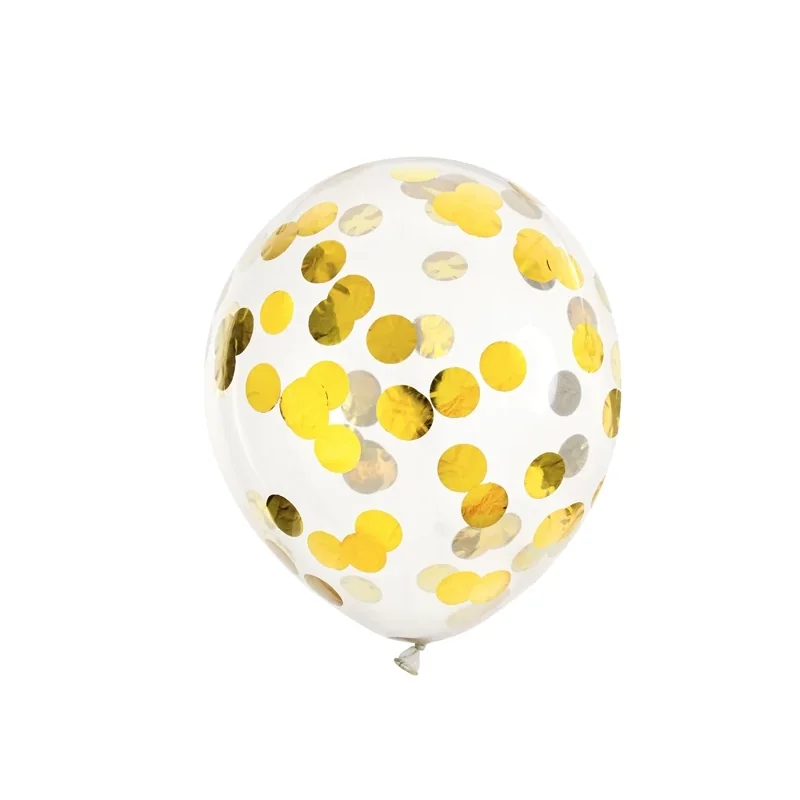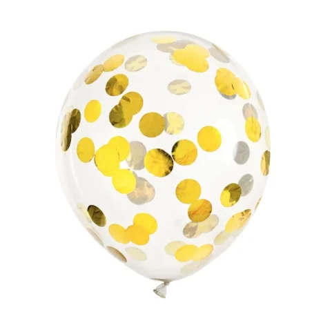 - Kolor: transparentny ze złotym metalizowanym konfetti w kształcie kółek w środku.
