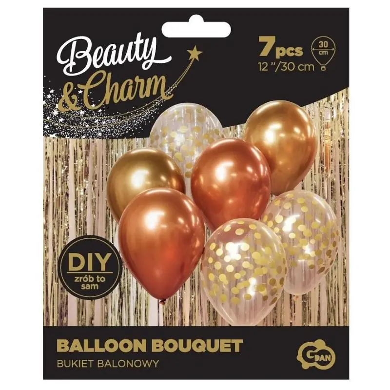 - bukiet balonowy złoto-miedziany, 7 sztuk