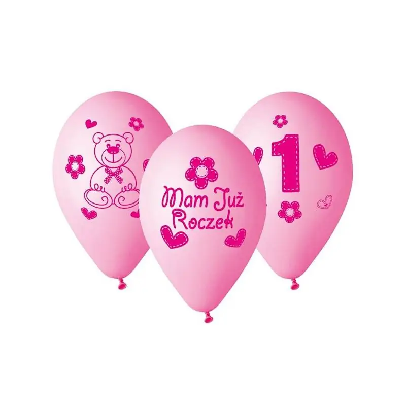 Balony na roczek w kolorze różowym to idealna dekoracja na pierwsze urodziny dziecka. Zestaw 5 sztuk pozwala stworzyć atrakcyjne aranżacje urodzinowe, które dodadzą przyjęciu wyjątkowego charakteru i sprawią radość maluchowi oraz gościom.