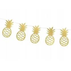Girlanda papierowa Ananasy 1,5 m hawajska ALOHA to funkcjonalna dekoracja, która wprowadza egzotyczny klimat i ułatwia przygotowanie stylowej aranżacji na przyjęcia tematyczne i imprezy w stylu tropikalnym.