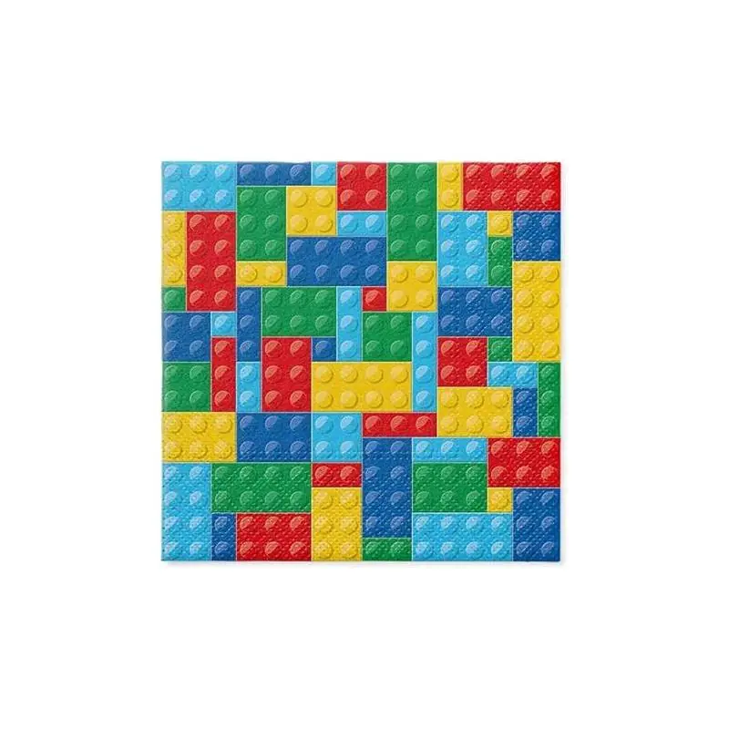 Dzięki atrakcyjnemu wielokolorowemu wzorowi klocków serwetki stanowią nie tylko funkcjonalny element stołu, ale również dekorację, która przyciąga wzrok i wprowadza radosny nastrój na przyjęciu.