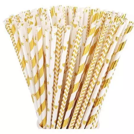 Słomki w kolorze złotym, mix wzorów