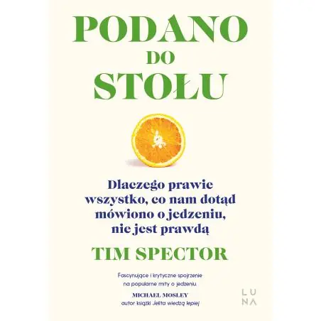 Dzięki swoim pionierskim badaniom profesor Tim Spector obala te i wiele innych mitów na temat jedzenia. W książce Podano do stołu analizuje skandaliczny brak wiarygodnych badań stojących za