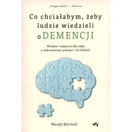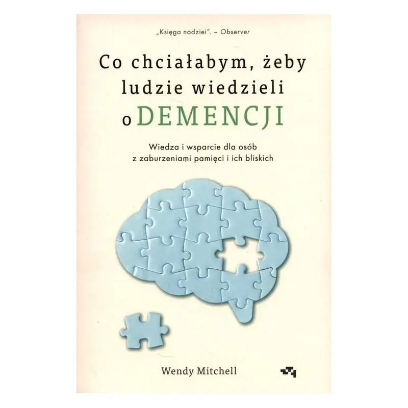 Wendy Mitchell miała 58 lat, kiedy zdiagnozowano u niej demencję o wczesnym początku. Jej umysł zalały fale obrazów osób w ostatnim stadium otępienia – bez pamięci, bez świadomości, bez szans i nadziei. Czy jej codzienność też tak będzie wyglądać? Co sama może zrobić, żeby dobrze przeżyć resztę życia? „Co chciałabym, żeby ludzie wiedzieli o demencji” to z jednej strony niosące nadzieję zapiski z prób poukładania sobie życia na nowo, a z drugiej niezwykle wartościowa wiedza o demencji, która przyda się zarówno osobom chorym, jak i ich opiekunom, rodzinie, przyjaciołom, a także pracownikom ochrony zdrowia. Autorka szczerze dzieli się trudnościami, z jakimi przyszło jej się mierzyć, opisuje, jak demencja wpływa na jej sposób myślenia, odczuwanie emocji, wzrok, słuch i orientację w przestrzeni. Pokazuje, jak radzi sobie z codziennością i co jej pomaga w utrzymaniu samodzielności, podpowiada rozwiązania, które ułatwią życie osobom z demencją na poziomie rodzinno-domowym, i sugeruje, jakie zmiany przydałyby się przy projektowaniu przestrzeni publicznej, aby była dla nich przyjazna. O autorce: Przez dwadzieścia lat pełniła funkcję kierowniczki zespołu w National Health Service. Po otrzymaniu diagnozy postanowiła poświęcić się szerzeniu świadomości na temat demencji oraz pokazywaniu innym chorym, że ich życie nie kończy się w momencie diagnozy. Jest ambasadorką Brytyjskiego Stowarzyszenia na Rzecz Walki z Chorobą Alzheimera, a w 2019 roku otrzymała doktorat honoris causa Uniwersytetu w Bradford za swój wkład w prowadzone badania naukowe. Ma dwie córki i mieszka w Yorkshire.