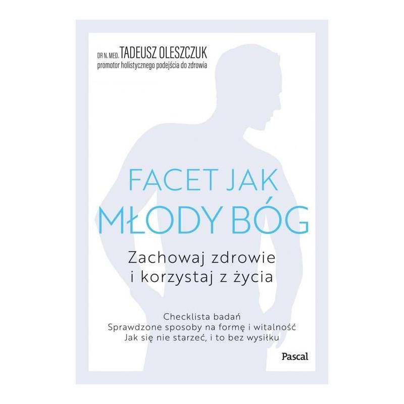 To jest instrukcja obsługi mężczyzny. Dla niego. I jego partnerki. Prosta i kompletna książka serwisowa tej niezwykłej biomaszyny, jaką jest mężczyzna. Oto najważniejsze odpowiedzi na pytanie: co robić, żeby ta jedyna w swoim rodzaju „wyścigówka” zawsze była niezawodna, sprawna, silna i szczęśliwa. Jak wygląda checklista badań dla faceta? Jak podnieść libido i cieszyć się seksem? Jak przeżyć kryzys wieku średniego? Jak zachować sprawność i witalność, a przy tym nieźle wyglądać? Coraz więcej panów interesuje się zdrowym stylem życia, chce się czuć i wyglądać młodo, tak długo, jak się da. A da się dłuuugo. Nowoczesna medycyna potrafi fantastyczne rzeczy! Czarno na białym, na dodatek prosto i przejrzyście: co zrobić, żeby opóźnić starzenie, jak się nie dać spadkowi libido, jak sobie pomóc, żeby trochę schudnąć i poprawić kondycję. Faceci te sposoby akceptują i stosują konsekwentnie, najczęściej z dobrym skutkiem. A jeśli podaje je lekarz, niekwestionowany autorytet, to sprawa ma się jeszcze lepiej. Książka Facet jak młody bóg dr. Tadeusza Oleszczuka to właśnie takie sposoby, do zastosowania od zaraz. Marcin Klimkowski, Radio 357