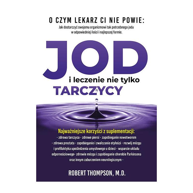 „Kiedy nie wiesz co, jak i gdzie; przepisz jod, on to wie”. Niewielu ludzi – wliczając w to lekarzy – zdaje sobie sprawę, jak ważny dla naszego zdrowia jest jod. Oto najważniejsze korzyści z suplememtacji: •zapobieganie nowotworom •zdrowe piersi • optymalizowanie funkcji tarczycy • zdrowa prostata •zapobieganie otyłości i pomoc w walce z nadwagą •rozwój mózgu i zapobieganie upośledzeniu umysłowemu u dzieci •wsparcie układu odpornościowego • zapobieganie chorobie Parkinsona i innym schorzeniom mózgu. Większość ludzi nie spożywa wystarczających ilości jodu, a nawet jeśli im się to udaje, czynniki środowiskowe nie pozwalają ich organizmom właściwie go wykorzystywać. Efektem jest epidemia niedoczynności tarczycy, otyłości, dysplazji sutka, nowotworów hormonozależnych, niepełnosprawności rozwojowych u dzieci i wielu innych schorzeń, którym można by zapobiec. Dr Robert Thompson praktykuje medycynę integracyjną, przeciwstarzeniową i holistyczną w Soldotna i Anchorage na Alasce. Z zawodu jest ginekologiem i położnikiem z ponad trzydziestoletnim doświadczeniem, postanowił jednak poświęcić się medycynie prewencyjnej oraz bioidentycznej hormonalnej terapii zastępczej u mężczyzn i kobiet. Jest autorem książki The Calcium Lie II: What Your Doctor Still Doesn't Know, a także skrzypkiem i entuzjastą aktywności na świeżym powietrzu. W wolnym czasie dr Thompson oddaje się gotowaniu, sztuce, muzyce oraz opiece nad swoimi czterema ukochanymi labradorami.