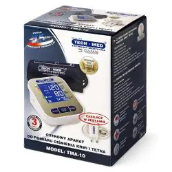 Ciśnieniomierz elektroniczny TECH-MED TMA-10 to nowoczesny ciśnieniomierz naramienny przeznaczony do wygodnego, codziennego pomiaru ciśnienia krwi i tętna w warunkach domowych. Urządzenie łączy prostą obsługę, czytelny podświetlany ekran LCD oraz funkcje ułatwiające regularną kontrolę wyników, takie jak wykrywanie arytmii, pamięć pomiarów i średnia z 3 ostatnich odczytów. To praktyczny wybór dla osób, które szukają dokładnego i wygodnego ciśnieniomierza do domowego użytku.