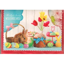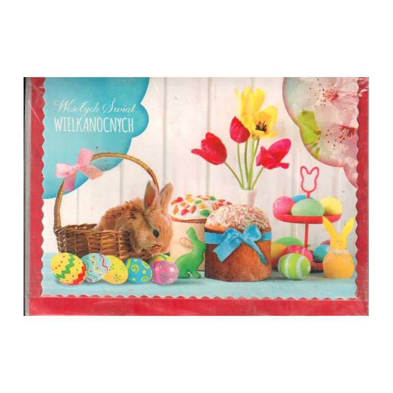 Karnet okolicznościowy wielkanocny z życzeniami i czerwoną kopertą to elegancki sposób na przekazanie świątecznych emocji bliskim. Kartka wielkanocna z gotowymi życzeniami pozwala w prosty sposób wyrazić pamięć i serdeczność, zachowując jednocześnie estetyczny i stylowy charakter. To doskonały wybór dla osób ceniących klasyczne karnety świąteczne w wyjątkowej oprawie.