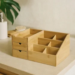 Bambusowy organizer z szufladami to praktyczny i elegancki sposób na uporządkowanie przestrzeni. Wytrzymały bambus, wielopoziomowe szuflady i uniwersalne zastosowanie sprawiają, że jest idealnym rozwiązaniem do domu, biura i pracowni.