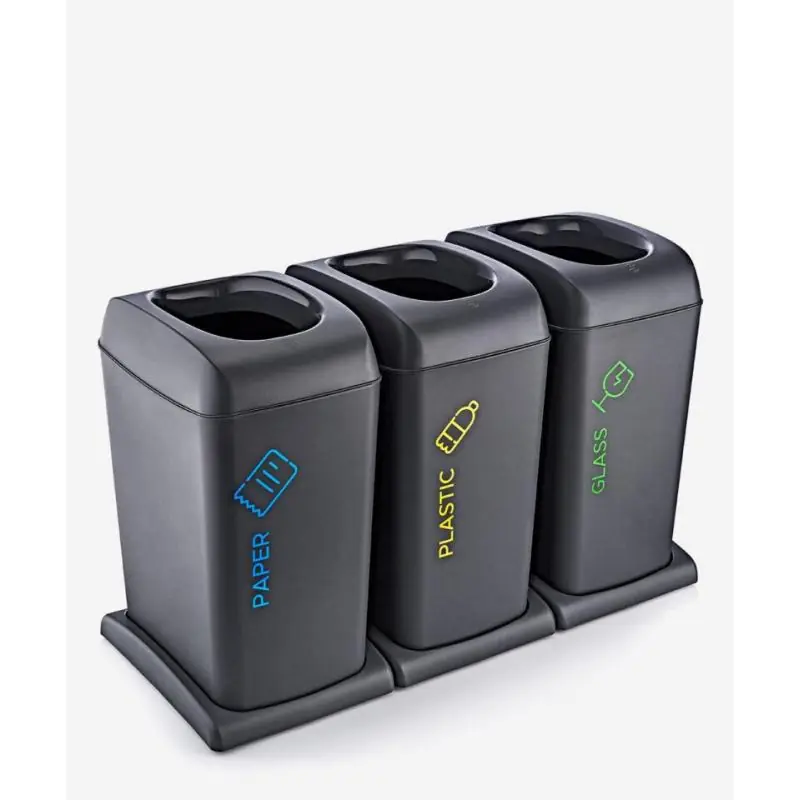 Mobilny kosz do segregacji 3×40 L to funkcjonalny i trwały system segregacji odpadów, idealny do mieszkań, biur, szkół oraz przestrzeni wspólnych. Zestaw składa się z trzech wyraźnie oznaczonych komór: na papier, szkło oraz plastik, co ułatwia codzienny recykling i pozwala zachować porządek.