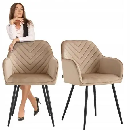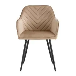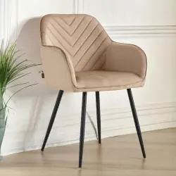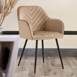 Krzesło welurowe HARRY marki VIKING to połączenie nowoczesnego designu, wysokiego komfortu siedzenia i solidnego wykonania. Ciemno-beżowa, miękka tapicerka z tkaniny welurowej w zestawieniu z czarnym, metalowym stelażem tworzy elegancki duet, który sprawdzi się jako krzesło do jadalni, salonu, biura, gabinetu lub sypialni. To idealny wybór do wnętrz urządzonych w stylu nowoczesnym, loftowym, klasycznym czy glamour.