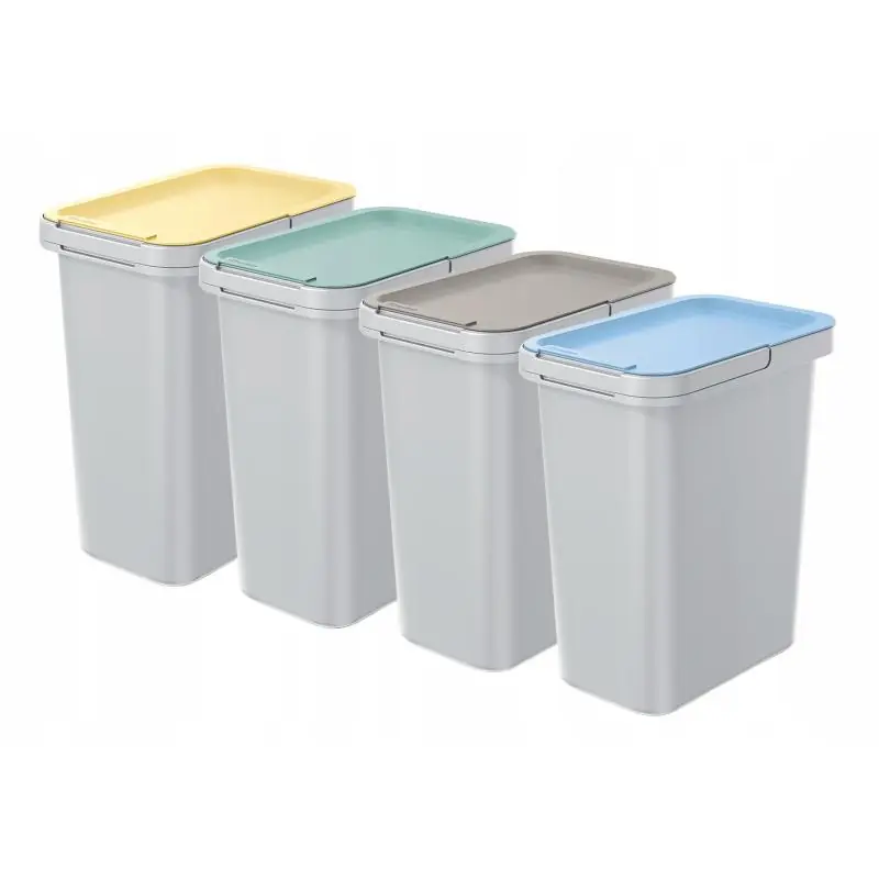 Zestaw koszy do segregacji KEDEN NKS12S4 Systema 4×12L to praktyczne i estetyczne rozwiązanie do skutecznego sortowania odpadów w domu, biurze lub pomieszczeniach użytkowych. Każdy pojemnik posiada kolorową klapę ułatwiającą właściwą segregację oraz wygodną rączkę dla komfortowego przenoszenia.