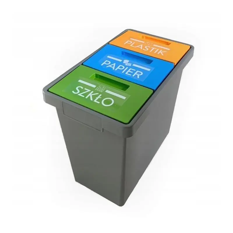 Czy każda frakcja ma osobny pojemnik? Tak, kosz posiada trzy wydzielone komory.
