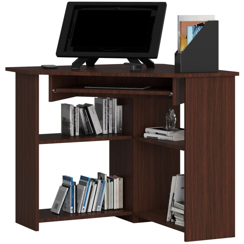 Biurko komputerowe narożne TED 80 cm w kolorze wenge to idealne rozwiązanie do małych przestrzeni biurowych, pokojów młodzieżowych oraz domowych gabinetów. Przemyślana konstrukcja narożna pozwala maksymalnie wykorzystać dostępną powierzchnię, zapewniając