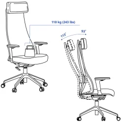 Krzesło biurowe JÄRVFJÄLLET z podłokietnikami to ergonomiczne rozwiązanie zaprojektowane z myślą o długotrwałej pracy biurowej wymagającej komfortu, koncentracji i prawidłowej postawy. Zaawansowane możliwości regulacji, przewiewne oparcie z siatki oraz wysokiej jakości wykończenie GLOSE sprawiają, że krzesło skutecznie wspiera zdrowe