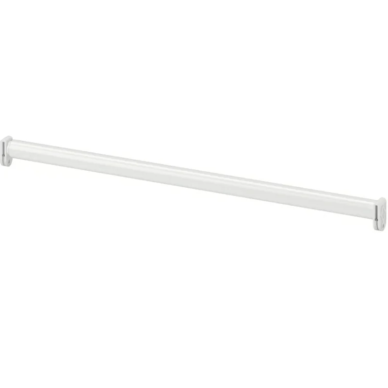 HJÄLPA regulowany drążek ubraniowy biały 60–100 cm to praktyczny element wyposażenia szafy, który pomaga lepiej wykorzystać przestrzeń i utrzymać porządek w garderobie. Dzięki regulacji długości łatwo dopasujesz drążek do szerokości wnętrza mebla i swoich potrzeb, tworząc wygodne miejsce na wieszaki z koszulami, sukienkami czy
