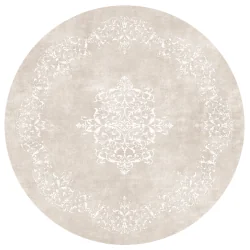Okrągły dywan Santi (beżowy/biały) 240 cm z kolekcji Trendcarpet Art Line to nowoczesny dywan, który świetnie podkreśla aranżację salonu i pomieszczeń reprezentacyjnych. Modny wzór inspirowany współczesnym designem sprawia, że dywan staje się mocnym elementem wystroju, a jednocześnie pozostaje łatwy do dopasowania dzięki spokojnej, neutralnej kolorystyce. Wykonanie metodą tkania maszynowego pozwala połączyć estetykę z korzystnym poziomem cenowym.