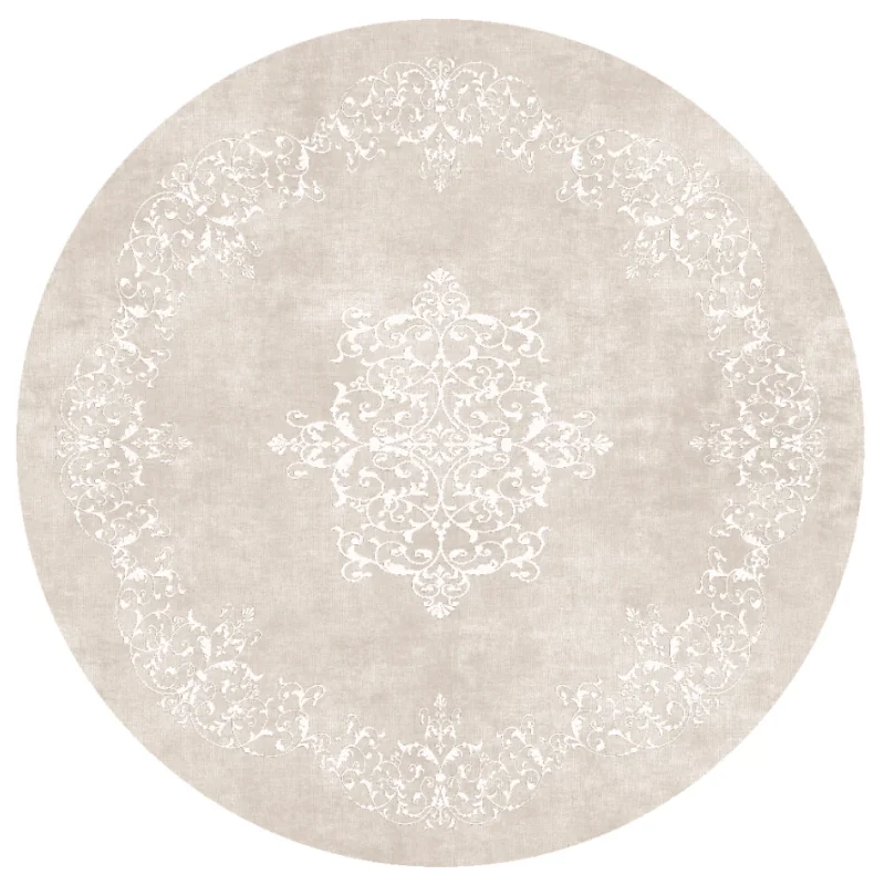 Okrągły dywan Santi (beżowy/biały) 240 cm z kolekcji Trendcarpet Art Line to nowoczesny dywan, który świetnie podkreśla aranżację salonu i pomieszczeń reprezentacyjnych. Modny wzór inspirowany współczesnym designem sprawia, że dywan staje się mocnym elementem wystroju, a jednocześnie pozostaje łatwy do dopasowania dzięki spokojnej,