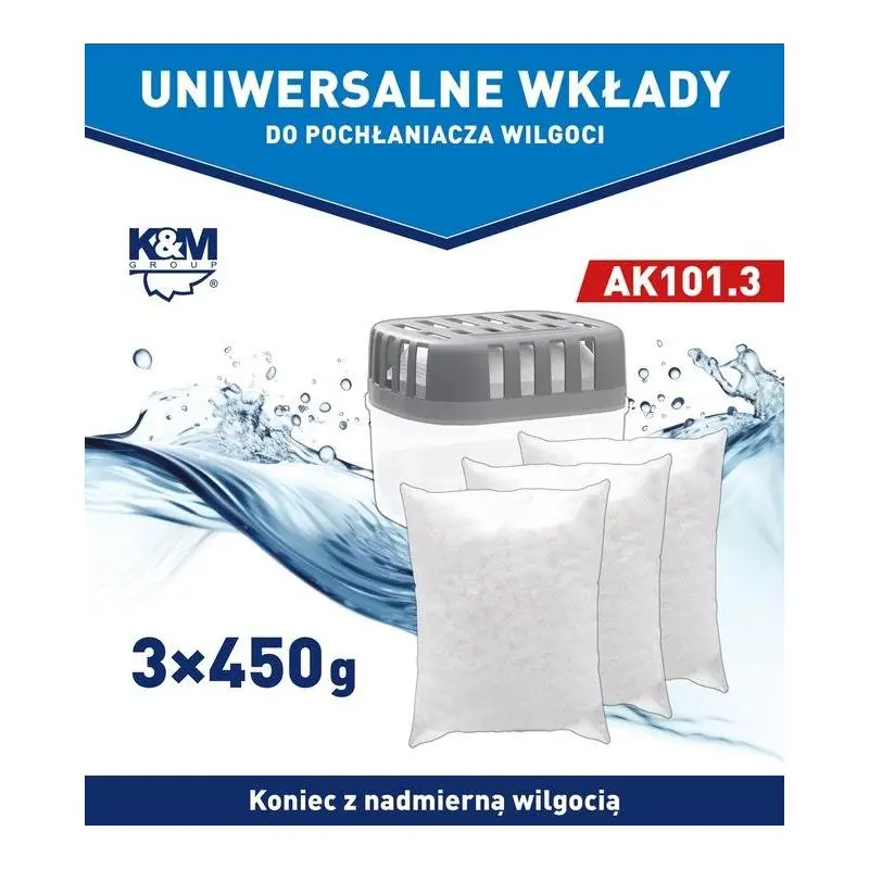 Wybierz wkłady K&M AK101.3 3 x 450 g i szybko przywróć skuteczność pochłaniacza, aby lepiej kontrolować wilgoć i poprawić komfort w domu oraz zamkniętych przestrzeniach.