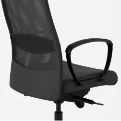 MARKUS krzesło biurowe Vissle ciemnoszary to ergonomiczne krzesło obrotowe stworzone do długiego siedzenia przy biurku. Dzięki funkcjom takim jak ręcznie regulowane odchylenie, zsynchronizowany mechanizm odchylenia, a także zagłówek i podłokietniki, pomaga utrzymać wygodną pozycję i wspiera plecy oraz kark podczas pracy. Dodatkowo siatkowe oparcie poprawia cyrkulację powietrza, co zwiększa komfort w cieplejsze dni.