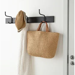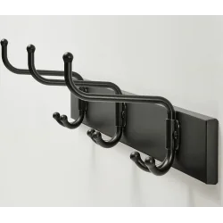 Wieszak z 3 hakami IKEA PINNIG czarny 79 cm to praktyczne rozwiązanie do wnętrz, w których liczy się wygodne przechowywanie, oszczędność miejsca i nowoczesny wygląd. Dzięki prostej formie i uniwersalnej kolorystyce model ten świetnie sprawdza się w przedpokoju, garderobie, łazience, kuchni lub pomieszczeniu gospodarczym. Czarny wieszak ścienny