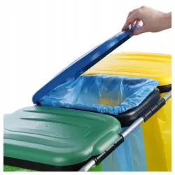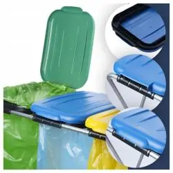 Kosz do segregacji śmieci 3-stanowiskowy z klapami i stelażem to praktyczne rozwiązanie do segregacji odpadów w domu, ogrodzie, garażu, warsztacie oraz przestrzeniach użytkowych. Dzięki trzem osobnym komorom pozwala wygodnie oddzielać różne frakcje odpadów, a kolorowe pokrywy ułatwiają codzienne korzystanie i poprawiają organizację