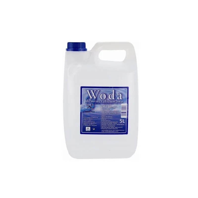 Woda demineralizowana destylowana 5L NANO-TECH to czysta woda techniczna przeznaczona do zastosowań domowych, warsztatowych i użytkowych, wszędzie tam, gdzie istotne jest ograniczenie osadów mineralnych. Produkt sprawdza się w urządzeniach wymagających użycia wody pozbawionej minerałów i zanieczyszczeń, pomagając wspierać ich prawidłowe działanie oraz utrzymanie w lepszej kondycji. To praktyczny wybór dla osób, które szukają wody demineralizowanej 5 litrów do codziennych zastosowań technicznych.