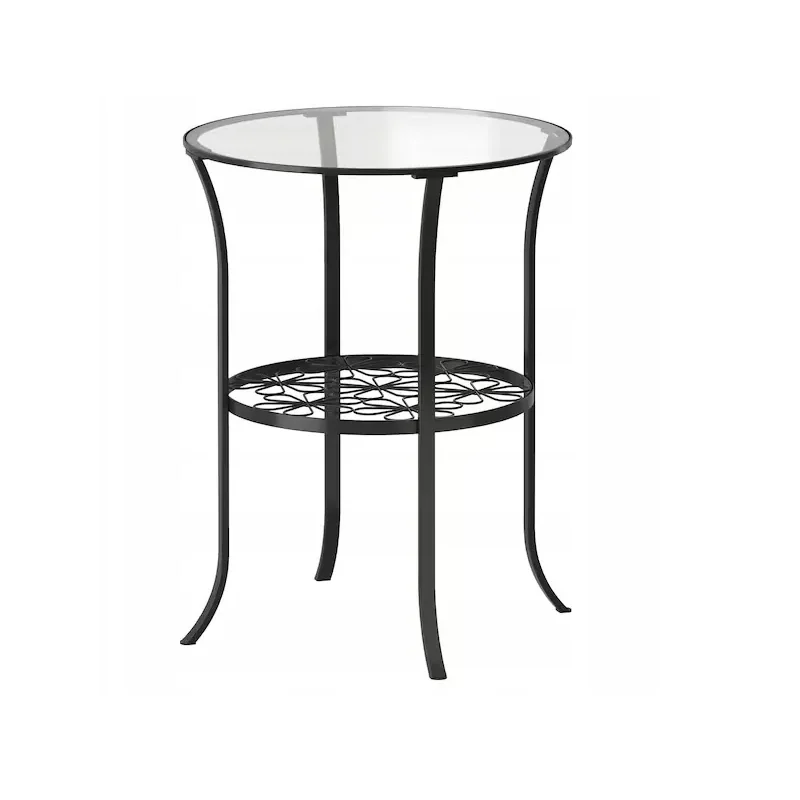 Stolik IKEA KLINGSBO czarny ze szkłem hartowanym to elegancki i funkcjonalny mebel, który doskonale sprawdzi się jako stolik kawowy lub pomocniczy w salonie, sypialni lub biurze. Połączenie czarnej stalowej ramy z przezroczystym szkłem nadaje mu nowoczesny, lekki wygląd, a dodatkowa półka pozwala na wygodne przechowywanie