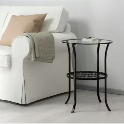 Stolik IKEA KLINGSBO czarny ze szkłem hartowanym to elegancki i funkcjonalny mebel, który doskonale sprawdzi się jako stolik kawowy lub pomocniczy w salonie, sypialni lub biurze. Połączenie czarnej stalowej ramy z przezroczystym szkłem nadaje mu nowoczesny, lekki wygląd, a dodatkowa półka pozwala na wygodne przechowywanie drobiazgów.