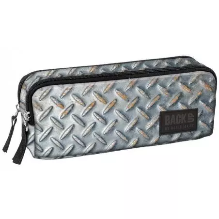 Piórnik BackUP model B 42 metal??? niemożliwe... dopiero po dłuższej chwili obserwator orientuje się, że piórnik wcale nie jest wykonany z blachy rodem z amerykańskiego warsztatu samochodowego. Wyposażenie: - 2 zapinane komory - ściągacze zamka z tkaniny - podszewka z nadrukiem logo - rozmiar 23x11x6 - 2 zapinane komory - ściągacze zamka z