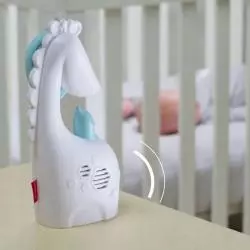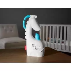 Urocza żyrafka pomoże uspokoić malucha dzięki 20-minutowemu odtwarzaniu łagodnej muzyki i dźwięków. Do wyboru jest 10 kojących piosenek, szum różowy i odgłosy przyrody. Można postawić ją na komodzie czy blacie stołu lub przymocować do wózka podczas spaceru! Zabawa, która rozwija. Zmysły: Kojąca muzyka i dźwięki dochodzące z żyrafki pomagają uspokoić dziecko, a równocześnie stymulują zmysł słuchu. Bezpieczeństwo i zadowolenie: Uroczy wygląd żyrafki i kojąca muzyka pomagają w uspokajaniu maleństwa poza domem.