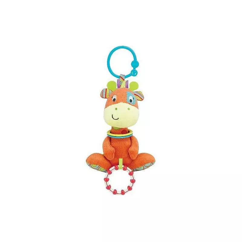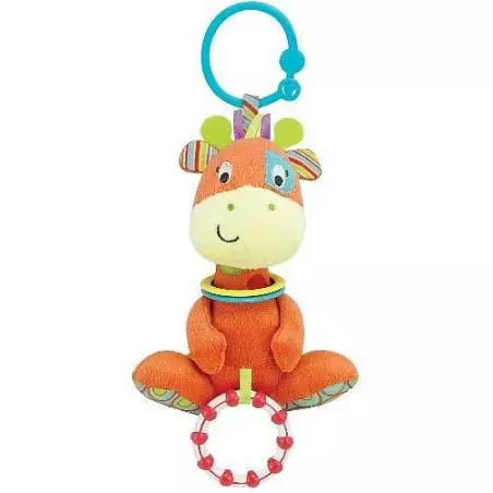 Seria zabawek „Mali Kumple” dedykowana już od urodzenia. Dzięki swej wyjątkowej budowie i mnogości wzorów oddziałowują na dzieci wielozmysłowo. Każda zabawka przypomina inne pluszowe zwierzątko. Poznaj je wszystkie i niech zostaną twoimi najlepszymi kumplami. Kolorowa, grzechocząca zawieszka. Przedstawia wesołą Żyrafkę. Wykonano ją z doskonałych materiałów dzięki czemu jest mięciutka bardzo kolorowa i przyjemna w dotyku. Posiada duży uchwyt mocujący służący do zwieszenia zabawki. Dziecko, potrząsając zwierzątkiem usłyszy delikatny odgłos dzwoneczka. Dodatkowo zawieszka posiada szeleszczące uszy oraz ruchome elementy doskonale stymulujące małą motorykę dziecka.