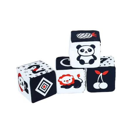 Czarno-białe ilustracje w 4 kontrastujących barwach,idealnie wspierają rozwój percepcji wzrokowej niemowląt poprzez pobudzanie ich ciekawości i poprawę koncentracji.