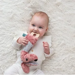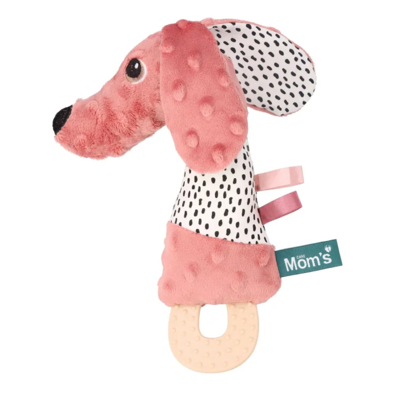 Piszczek z gryzakiem Piesek Jamiś różowy polskiej marki Mom's Care.