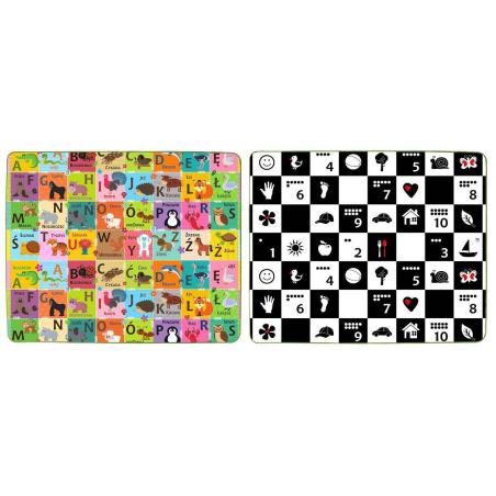 Piankowa dwustronna kontrastowa mata edukacyjna Szachownica 3w1 Obrazki Kontrastowe czarno-biała 180 x 200 x 1 cm