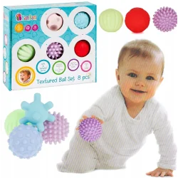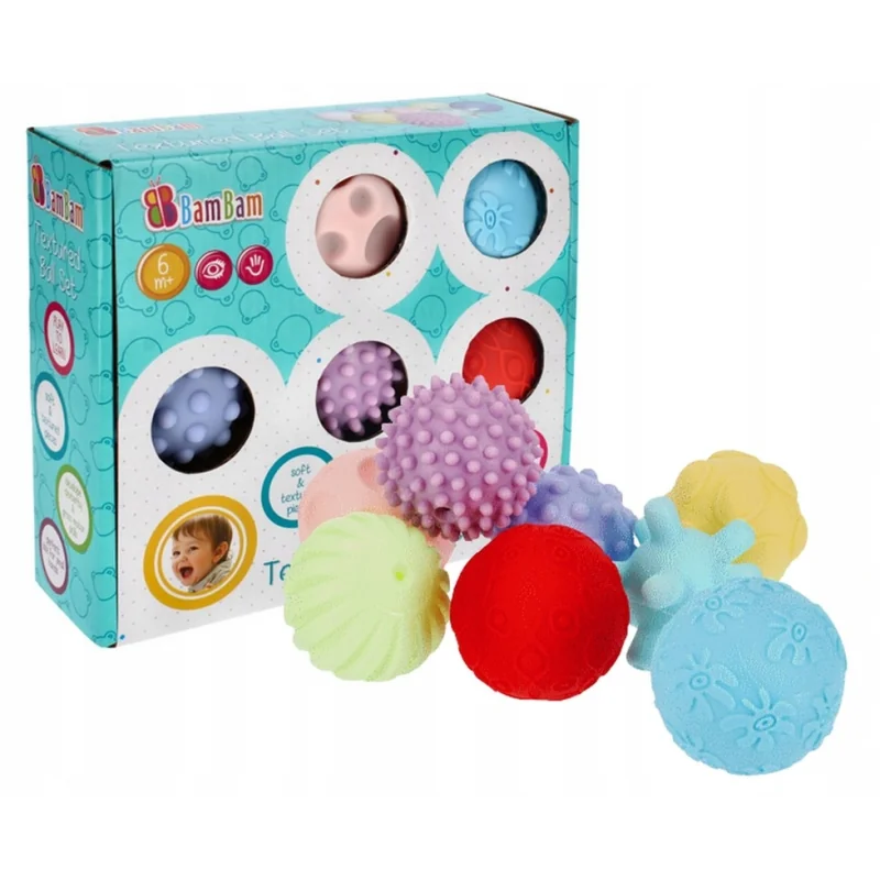 Piłeczki sensoryczne BAM BAM to bezpieczny i kolorowy zestaw dla niemowląt od 6. miesiąca życia, wspierający rozwój zmysłów, motoryki oraz pierwszych umiejętności manualnych. W skład zestawu wchodzi 8 miękkich, zróżnicowanych fakturowo piłeczek, które stymulują dotyk, wzrok i koordynację ruchową. To doskonała propozycja dla rodziców, którzy poszukują edukacyjnej zabawki wspierającej rozwój sensoryczny malucha już od pierwszych miesięcy życia.
