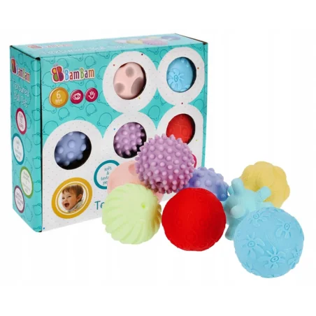 Zestaw piłeczek sensorycznych BAM BAM to sprawdzona pomoc rozwojowa, która wspiera rozwój zmysłów i sprawności manualnej dziecka już od pierwszych miesięcy. Dzięki zróżnicowanej strukturze i łatwości chwytania, piłeczki są idealne do codziennej zabawy, terapii oraz nauki przez działanie.