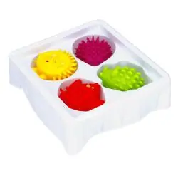 Zestaw zabawek sensorycznych Bam Bam to cztery urocze, kolorowe zwierzątka z wypustkami, stworzone z myślą o najmłodszych dzieciach. Każde zwierzątko ma inny kształt, kolor i fakturę, dzięki czemu wspiera rozwój zmysłów, dotyku i motoryki już od 6. miesiąca