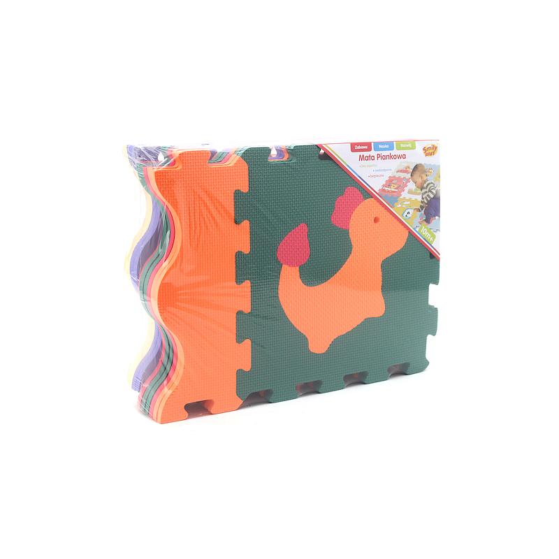 Mata piankowa Smily Play Smoki to wielofunkcyjna mata edukacyjna dla dzieci od dziesiątego miesiąca życia, która może pełnić rolę bezpiecznej maty do zabawy, kojca na zabawki oraz puzzli do układania. Wykonana z miękkiej, przyjaznej w dotyku pianki, zapewnia komfort podczas zabawy, raczkowania i odpoczynku. Kolorowe elementy z motywem smoków wspierają rozwój zmysłów, wyobraźni oraz zdolności poznawczych, a antypoślizgowa powierzchnia zwiększa bezpieczeństwo użytkowania.