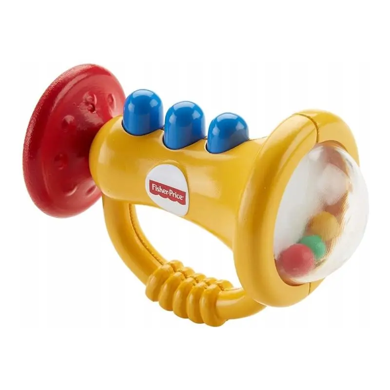Fisher-Price Trąbka gryzaczek grzechotka DRF17 to sensoryczna zabawka 2w1 dla niemowląt, która wspiera rozwój dziecka już od pierwszych miesięcy życia. gryzak i grzechotka Fisher-Price DRF17 łączy bezpieczne elementy do gryzienia z funkcją dźwiękową, pomagając łagodzić dyskomfort związany z ząbkowaniem oraz stymulując zmysły