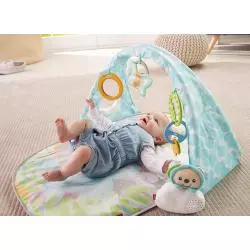 wspiera sprawność ruchową, gdy dziecko leży pod łukiem, może sięgać po wiszące na nim zabawki i je trącać