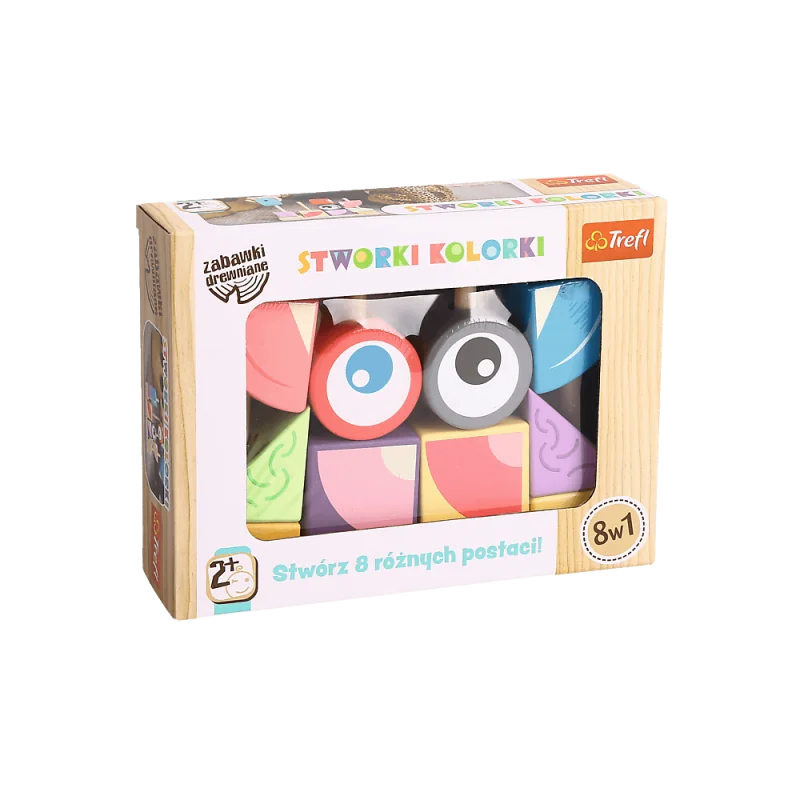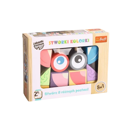 Zabawka ogólnorozwojowa wykonana z wysokiej jakości drewna. W zestawie podstawka, składająca się z 4 drewnianych puzzli z kołeczkami oraz 10 kolorowych klocków o różnych kształtach z otworami. Mamy dla Was 8 propozycji konstrukcji w załączonej instrukcji, ale tak naprawdę nieograniczona ilość możliwości tworzenia wielobarwnych figur! Zabawka zachęca do odgrywania ról i rozwija wyobraźnię. Wspiera rozwój motoryki małej, uczy koncentracji i logicznego myślenia.