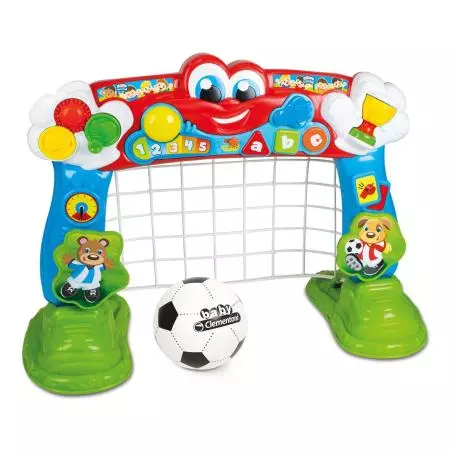 Bramka marki Clementoni to produkt 2 w 1: bramka do piłki nożnej i zabawka edukacyjna, która będzie towarzyszyła dziecku przez wiele godzin beztroskiej zabawy. Swoim sympatycznym głosem nauczy dziecko pierwszych liczb, liter, kolorów, kształtów i słów zarówno po polsku jak i po angielsku.